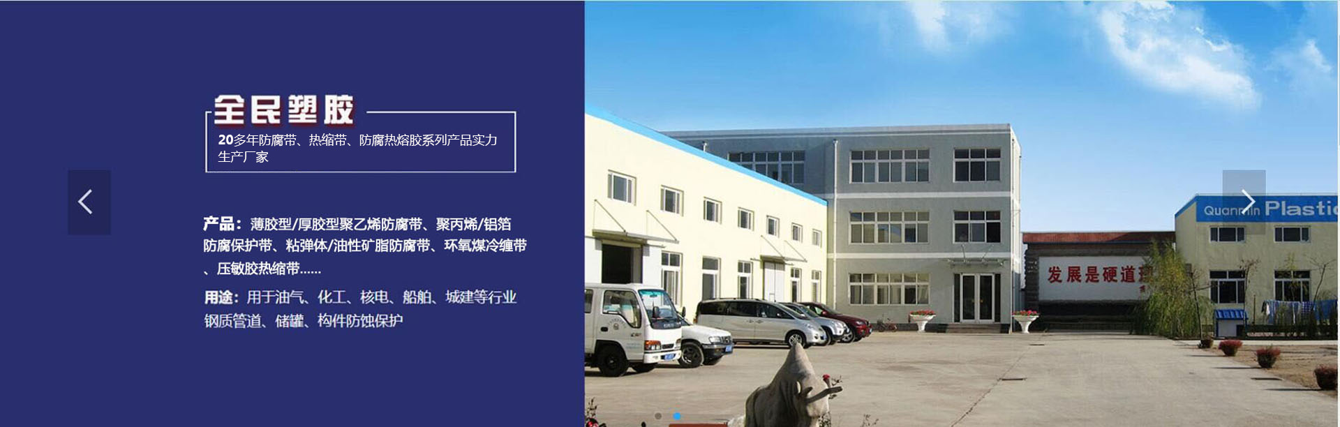山東全民塑膠有限公司主營產品有:粘彈體防腐膠帶聚丙烯防腐膠帶聚乙烯防腐膠帶、壓敏膠型熱收縮帶、環氧煤瀝青冷纏帶、礦脂防腐帶、粘彈體防腐帶、粘彈體膏、850鋁箔膠粘帶、PVC管路膠帶、聚乙烯熱收縮帶、聚乙烯熱收縮套 、防腐膠帶底漆、礦脂底漆、礦脂膩子、無溶劑液態環氧、環氧粉末涂料、3PE防腐熱熔膠、聚乙烯防腐顆粒、聚乙烯補傷棒/聚乙烯補傷片等。品種多,價格合理,防蝕性和耐候性好,壽命長。